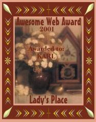 July 12th. 2001. * "Hello and congratulations on qualifying for my Awesome Web Award." Lady Lynda. |