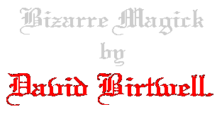 audience. The Bizarre Magick doesn't have to always deal with occult-related topics, but often does. This is probably due to the emotional impact of the occult, or the unknown. Just look at the success of horror and mystery novels and movies. Last of all, the Bizarre Magickian would feel the performance was a failure if he/she heard "How did he do that???" from the participants. The Bizarrist would much rather just hear "Wow!!!" from the participants. This