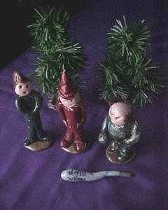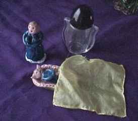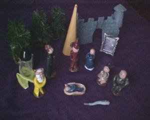 I would like to assign a bit of outside reading that will illustrate this first lecture. If you do not have this material at hand you might check with one of your neighbors and see if they might share with you this useful information. In today's illustration we are going to examine the first volume of the Punx trilogy, namely "MAGICAL ADVENTURES AND FAIRY TALES. As I am particularly fond of a couple of these stories and since I have added them to my own repertoire, these are the ones I will address in this material. If you are familiar with the story of the Pixie Princess and her Magic Cloak you will immediately know what we are talking about. If you do not then you must read the material for it to make any sense. To begin with, there is this wonderful material called Fima (Fimo in Europe) Sculpting clay available in your local arts and crafts store. It comes in a multitude of colors which can be mixed and kneaded to make the colors that you might not find. There is another material called Skulpty Clay that you can buy in bulk quantities but I have only been able to find white. It is my preference. The Fima is a bit pricey if you have big projects. The Skulpty can be rolled, shaped, molded and pressed into almost any shape you might want. It can be hardened by baking in a low oven and can be painted with acrylic paints, sealed and finished with clear acrylic spray and achieve some most astonishing results. In the Punx play, which incidentally was not his to begin with but like so many stories, handed down from generation to generation, is a children's story. When I produced my version I did not try for physical accuracy in the little characters but instead tried to make them look like children's recreations. The faces are not formed but are simply punched for features. The coloring scheme was done outside the lines, so to speak but the characters do match pretty well the way Punx described them. The castle is a three fold screen using Sculpty on the surface of cardboard. The tower was made from a kitchen towel center roll. cut and covered with Skulpty it has slots, which let it sit over the corner of two of the castle walls. The trees are from the Christmas shop and have Sculpty bases painted to look like dirt. The Punx story called for a miniature pistol but I elected to make the weapon of choice a club and in the story call it a magic club named IBM. The mirrored bottle was at one time a cologne bottle but the opening in the neck was large enough to insert a rolled portion of silver plastic which straightened out inside the bottle to create the mirror glass gaff. If you examine the pictures in the book you will see that mine match pretty well. The characters are no more than four inches high. The mechanical pencil vanish mentioned in the Punx story is relatively easy to make and some of the big, thick ball point pens really adapt nicely to this gimmick. The small square of silk came form a little 9 inch kerchief but had to be re-hemmed to make it vanish in the pencil prop. While the story line and the prop design follow pretty much the script outlined by Punx, the thing that makes my version pretty unique is the fact that the story is recorded and I wrote background music for each of the characters. Every time the character's name is mentioned on the tape, the motif music repeats itself over and over. This gives me time to walk the characters about the table like a child playing with little action figures. While it eats up a lot of time it is a charming way to present this particular story. |
