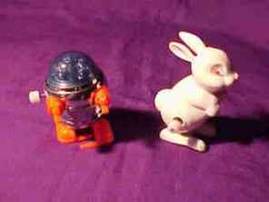 The series of pictures show different wind up toys that accomplish the same thing. The exception to the presentation that I have used for different occasions has to do with the change of characters. The rabbit was used in Easter time shows for example.