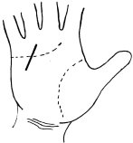 This works equally well on the right palm as shown in the illustration (dotted lines indicates the natural creases in the palm).