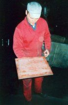 | The bronze is then poured into the mould and left for at least 24 hours to cool. No one can be sure of the final result until the weighted lid is removed. A good deal of finishing work then needs to be done which ends with creating the wonderful patina and burnishing. | ||