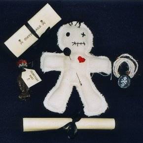 The VOODOO BOX is a lovely hand made box containing many strange items. Although there are many effects possible with the contents of the box, none of the items are gimmicked in any way that can be detected. When open, spectators see a wonderful display. You can spend time taking each item out and allowing your spectator to handle the item while you tell them all about it's use in Voodoo practices! THE CONTENTS OF THE BOX ARE:- Voodoo Doll or