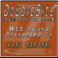 * "Congratulations Karl. I found your site worthy of receiving the DoubleBite Graphix & Web Design Award in recognition of the work involved in making it such an intriguing (some parts even awesome) Web Site". |