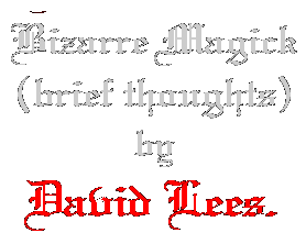 Bizarre Magick is a very strange subject. Not only for the lay people who watch this type of performance but also for the performers who work in this field. It appears that there are as many different definitions of Bizarrism as there are performers. It can range from the blood, guts and maggots performances through to heavy ritualistic Occult presentation but then down to simple storytelling (if there is such a thing as ‘simple’ story telling). All of it has a place in this strange, esoteric field. When you think about it, Bizarrism can also cross the bridge between Mentalism and Psychic Entertainment. Many straight mentalism classics can be dressed very nicely into Weird presentations. With all the emphasis we place on the dressing of our performance area (large or small), the presentation and atmosphere, Bizarre Magick can become close, personal and intimate like no other magical performance. Our beloved props serve their purpose well BUT they are only props, They are not the effect, they do not create the effect. The effect is created by the personality and storytelling skills of the performer, NOT his paraphernalia. In my teenage years, I was held on the edge of my seat (like his audience) by the marvellous ghost stories told by Dave Allen in his long ago television series, Dave Allen At Large. For those who never saw him, he was a quiet mannered Irish comedy raconteur, very funny. During his show, he would change character as he told a ghostly tale. The