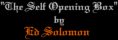 Continuing with box material, there is a historical box described by Tony Andruzzi in the little book called DEMON'S DIARY by Masklyn Ye Mage, which got no more than a half a page and all too brief instruction of it's construction. It was a self-opening box, which depended upon the humidity and temperature for timing. It is a most clever application of magician's wax or mortician's wax and I will attempt to describe my version in this lecture. Using the line drawings therein, you can see the basics of the box and the placement of the piano wire spring.