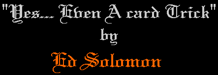 I must confess that this is about the only "card trick" as such that I ever performed with any regularity. I explained to the audience that the Magicians Union requires that one card trick be performed in every show or they will come and take away my wand. It covers a multitude of excuses why I don't do card magic.