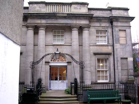 The building which was the Edinburgh Wax Museum and home of 'Castle Dracula'. The photo above, taken in 2003, shows two thirds of the frontage which is still exactly how the building looked when used to house the Wax Museum. It was built in 1766 as The New Assemblies Hall. The building, including the fine Georgian sandstone facade by Gillespie Grahame, was restored under the direction of Edinburgh architect John C. Hope, RIBA, to house the Edinburgh wax Museum. Built originally for the dancing assemblies that were in vogue during the eighteenth century, this fine building has been used as a bank and as a children's home (during the conversion over 40 pairs of small wellie boots were found neatly ranged in a cupboard). earlier the building was a Masonic Lodge and Sir Walter Scott himself was a guest at Lodge Meetings. The Assemblies Hall is approached, like many Edinburgh buildings, through a close. These narrow passages, so characteristic of Edinburgh, are variously known as 'close', 'pend' and 'wynd'. A close, it is generally agreed, approaches a private building, a wynd connects public thoroughfares. The precise meaning of pend seems obscure, and visitors are likely to be given widely ranging interpretations of the word. The Assemblies Hall Close leads into the sunny courtyard which fronts the Museum and this space was used for outdoor functions during the summer. |
