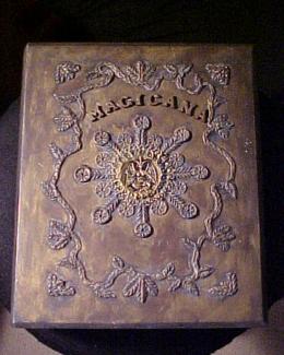 | This is actually a box that opens like a book and it is great for carrying esoteric props. The filigree is the epoxy putty all worked with nut picks, small screwdriver blades and a couple of dental picks. The use of this putty is unlimited and here it looks for all the world like tooled leather. The book below is partway through being worked on. |