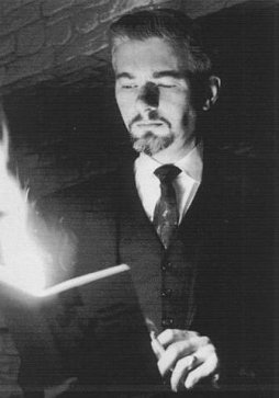 Anthony Raven using the "Flaming Book" in a presentation of Bizarre Magick. (Circa, 1980's)